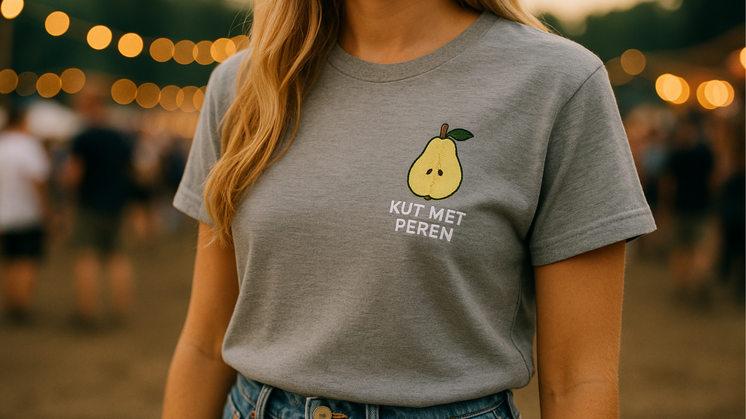Custom t-shirts met jouw eigen tekst. Duurzaam geborduurd. 🌿